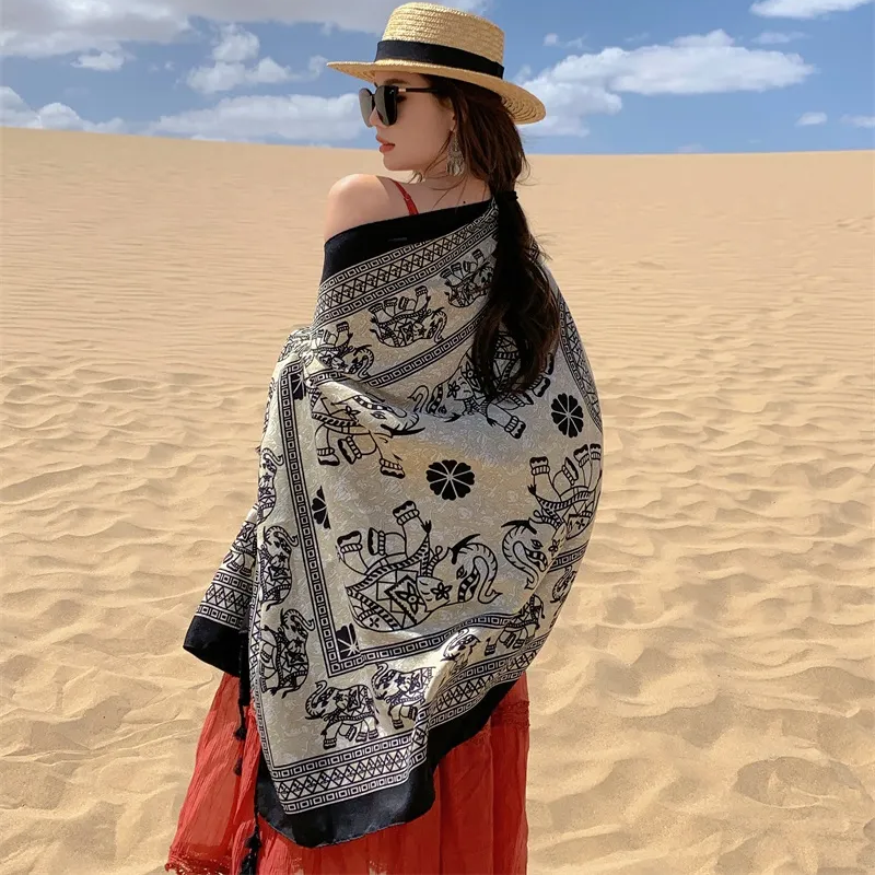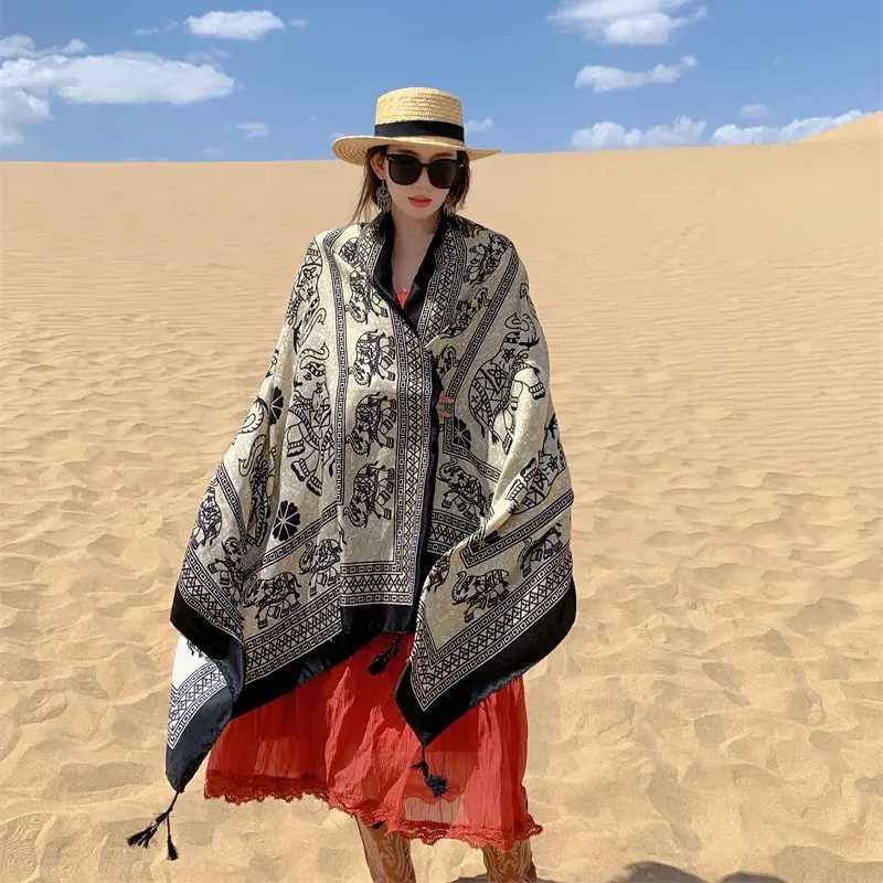 Canga Longa Estampada Nisha: Estampa Indiana de Elefantes em Poliéster para um Verão de Elegância e Versatilidade!