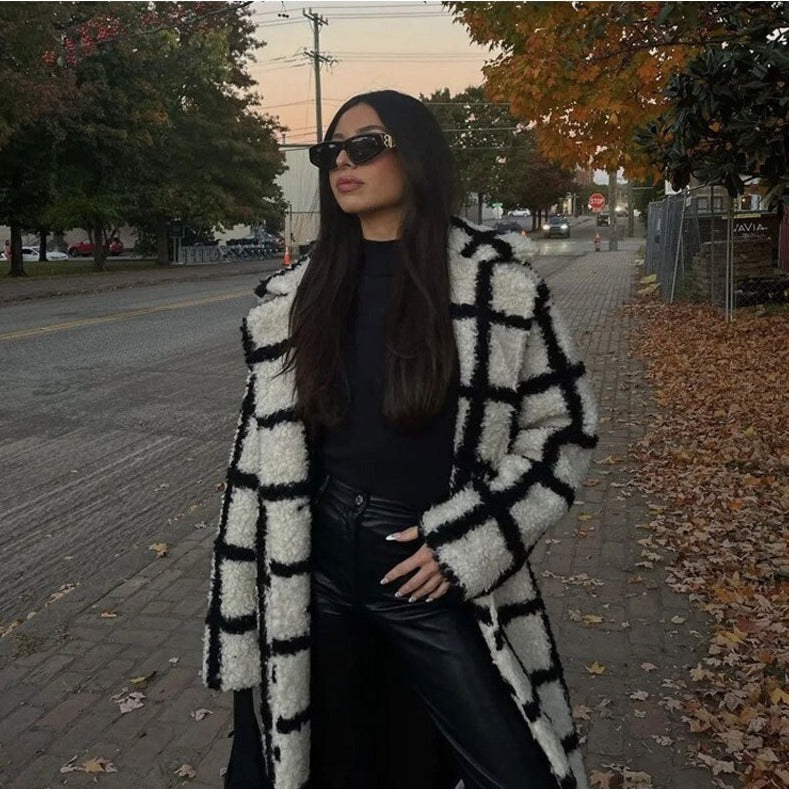 O elegante Sobretudo Liz combina com qualquer look, enquanto te mantém protegida do frio. O toque suave da lã, cuidadosamente selecionado, garante seu conforto ao máximo sem comprometer o luxo. Os detalhes em xadrez adicionam um toque de classe, garantindo que você brilhe em qualquer ocasião. Experimente o estilo e a comodidade do sobretudo Liz e encante-se com uma peça exclusiva Versalla!
